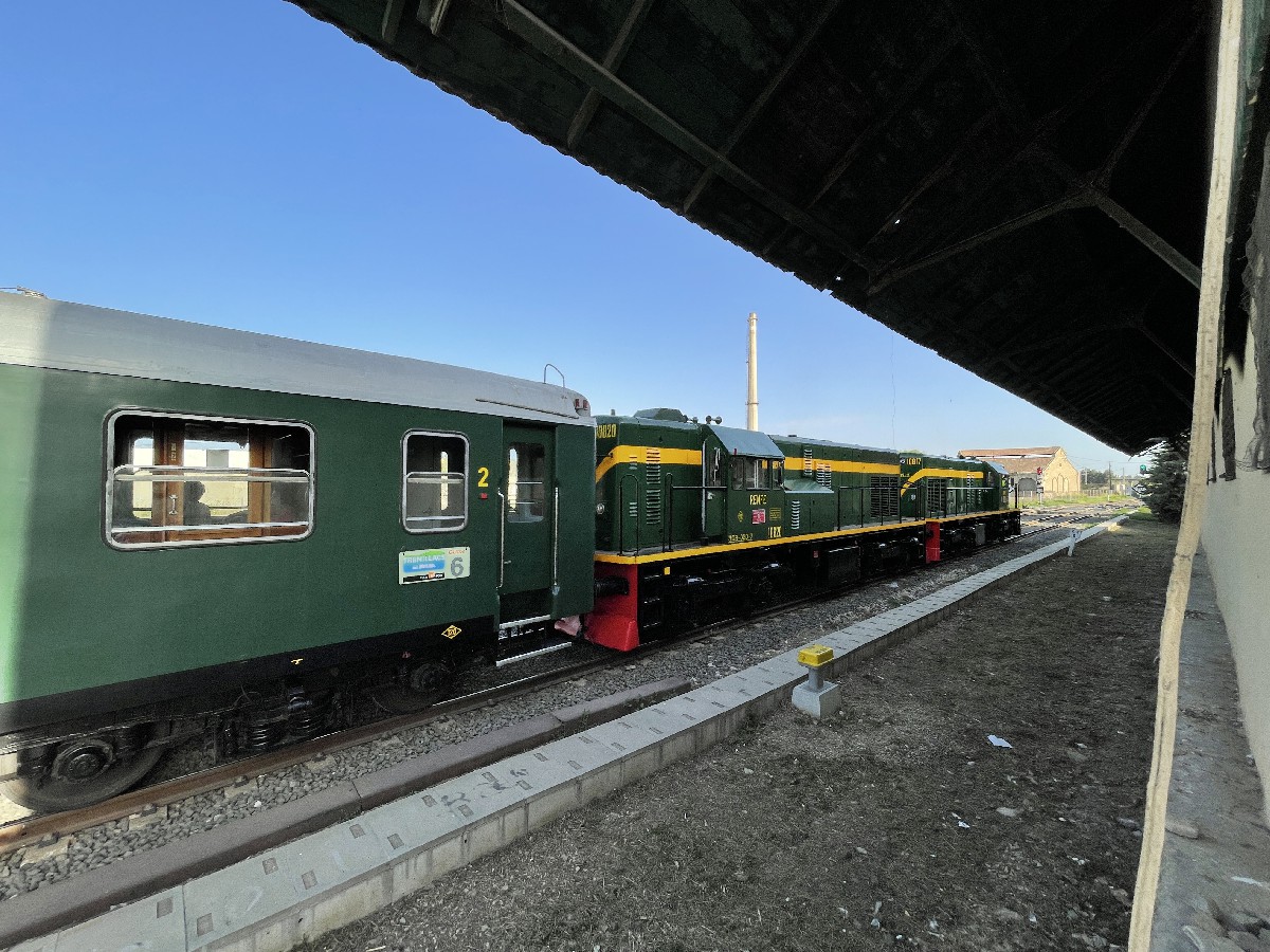 Tot això, a bord d'un autèntic ferrocarril dels anys 60 format per dues locomotores dièsel dels models 10817 i 10820 construïdes l'any 1968, conegudes també com a "ye-yes". El material remolcat està format per quatre cotxes d'època de la sèrie 6000.