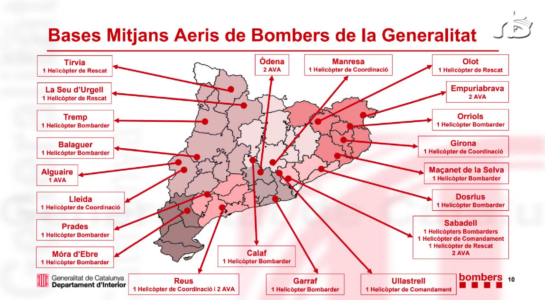 A banda del reforç de personal, la Regió d'Emergències Lleida es reforçarà amb mitjans aeris, incorporant 2 helicòpters bombarders, amb base a Tremp i Balaguer; 1 helicòpter de coordinació i comandament, amb base a Lleida; 2 helicòpters de rescat, amb base a Tírvia i La Seu d'Urgell i 1 avió de vigilància i atac, amb base a Alguaire. En total, per afrontar la Campanya Forestal a Catalunya, Bombers de la Generalitat disposarà de 35 mitjans aeris, 10 dels quals depenen del Ministerio de Transición Ecológica y el Reto Demográfico (MITECO). D'alguns d'aquests mitjans aeris ja se'n va avançar la incorporació al mes de maig (2 helicòpters bombarders, 2 helicòpters de Coordinació i Comandament i 3 Avions de Vigilància i Atac).