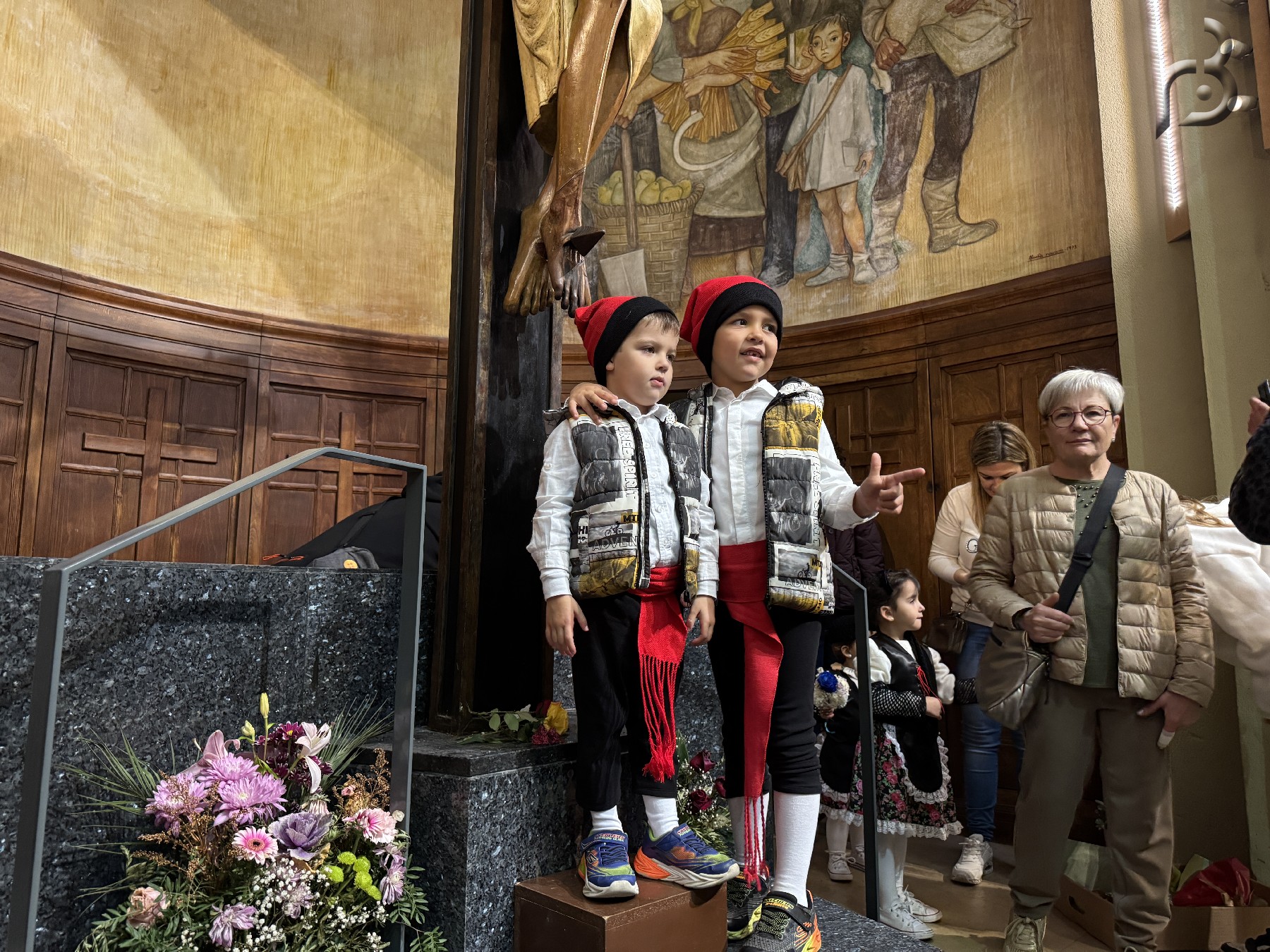 Un cop arribats al santuari, han entrat a dins per dipositar les flors. Aquest any hi ha pres part més d'un miler d'infants, ja que alguns centres escolars de la ciutat han proposat a la totalitat dels seus alumnes d'assistir a l'acte, mentre que en anys anteriors només hi anaven fins a 4t de primària.
