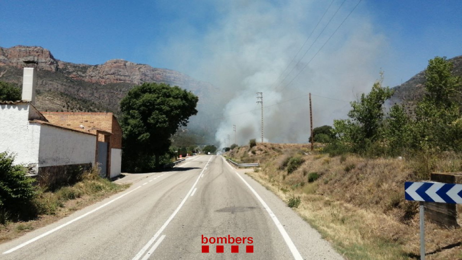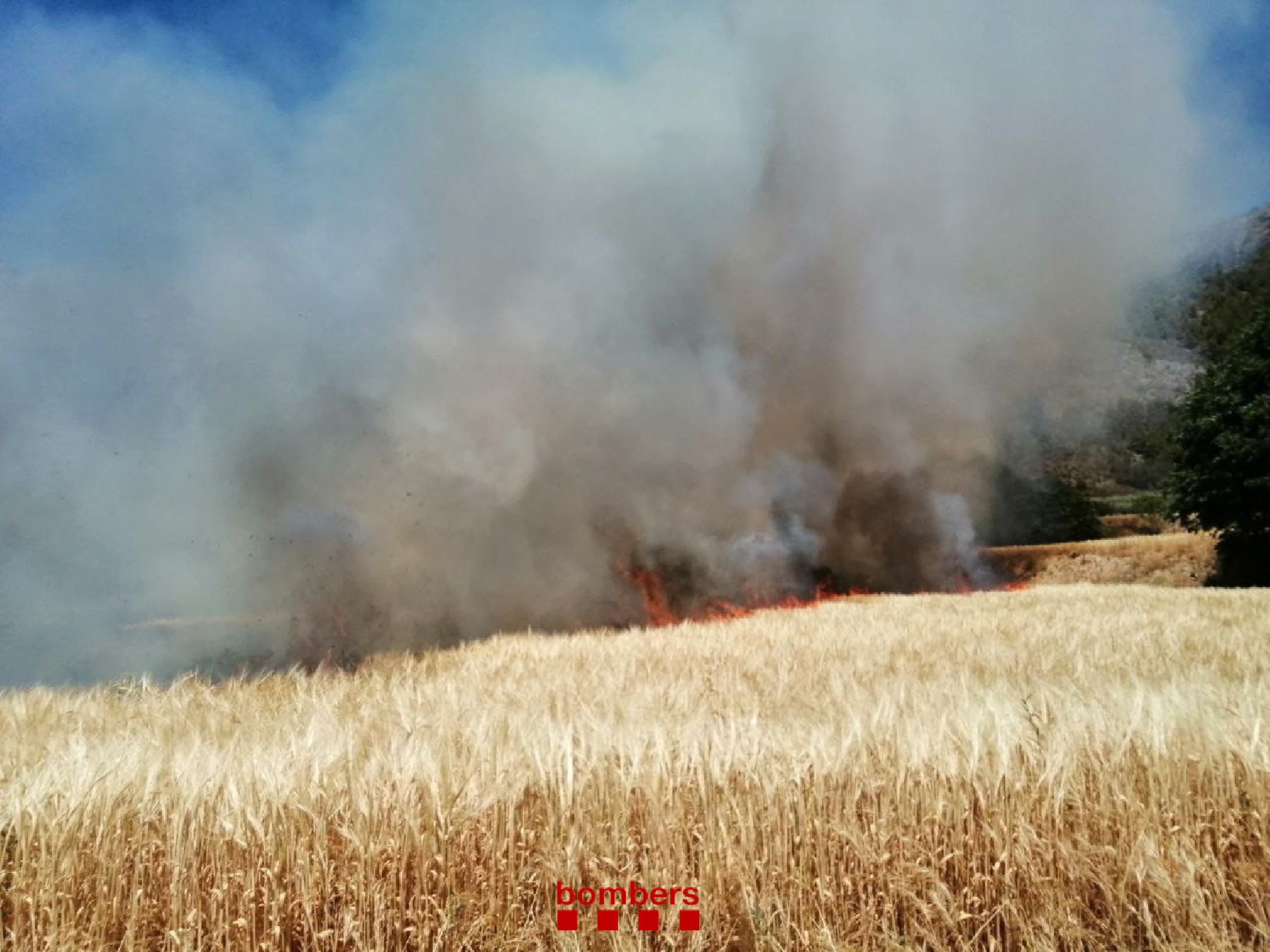 Fins a 12 dotacions terrestres dels bombers i 4 mitjans aeris van haver d'intervenir aquest dimecres a Camarasa per sufocar un incendi en uns camps de conreu propers a la carretera C-13