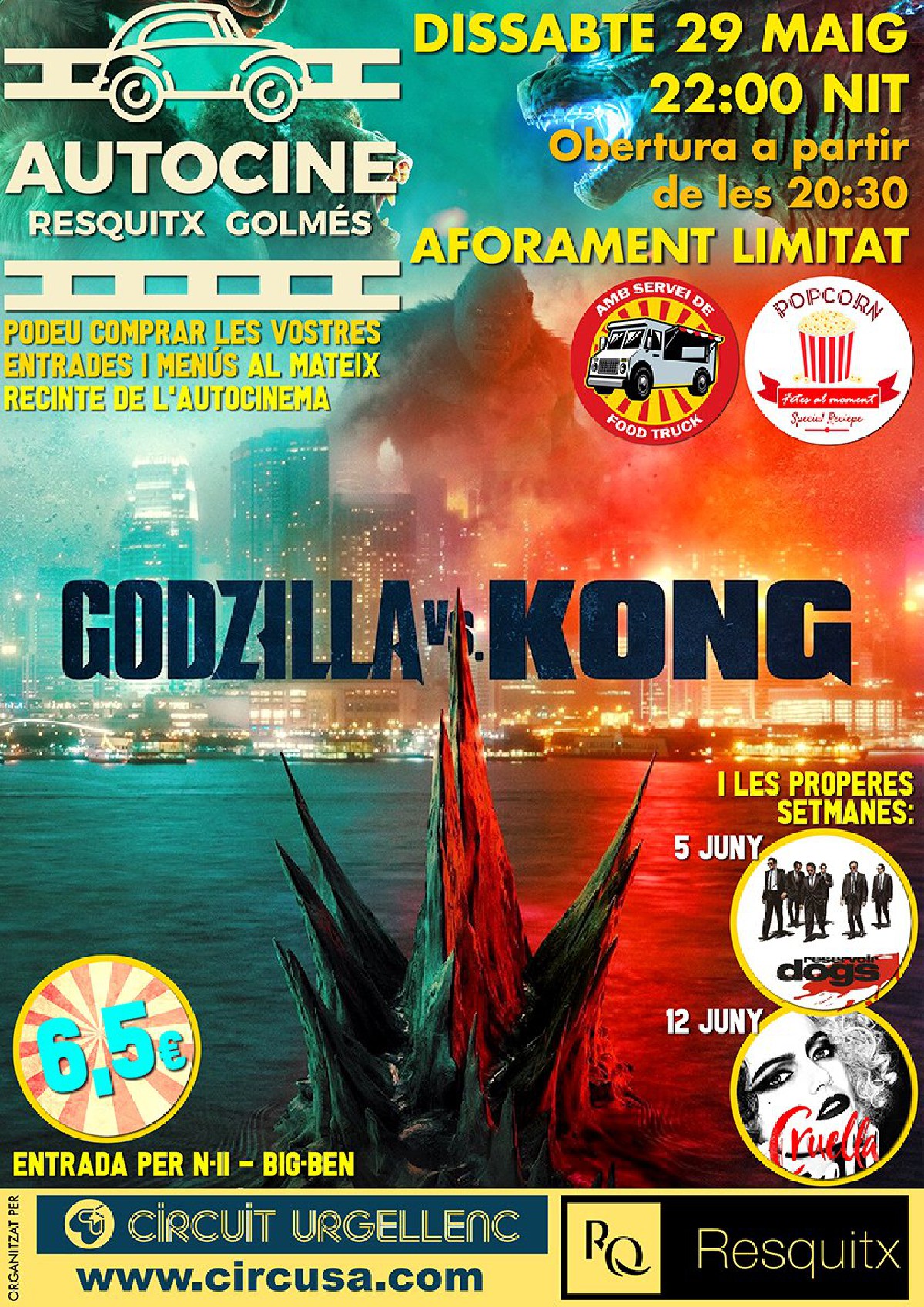 L'esdeveniment obre aquest dissabte amb la projecció de 'Gozilla VS Kong'. El dissabte 5 de juny la pel·lícula que es projectarà serà 'Reservoir Dogs' i el 12 de juny 'Cruella'.