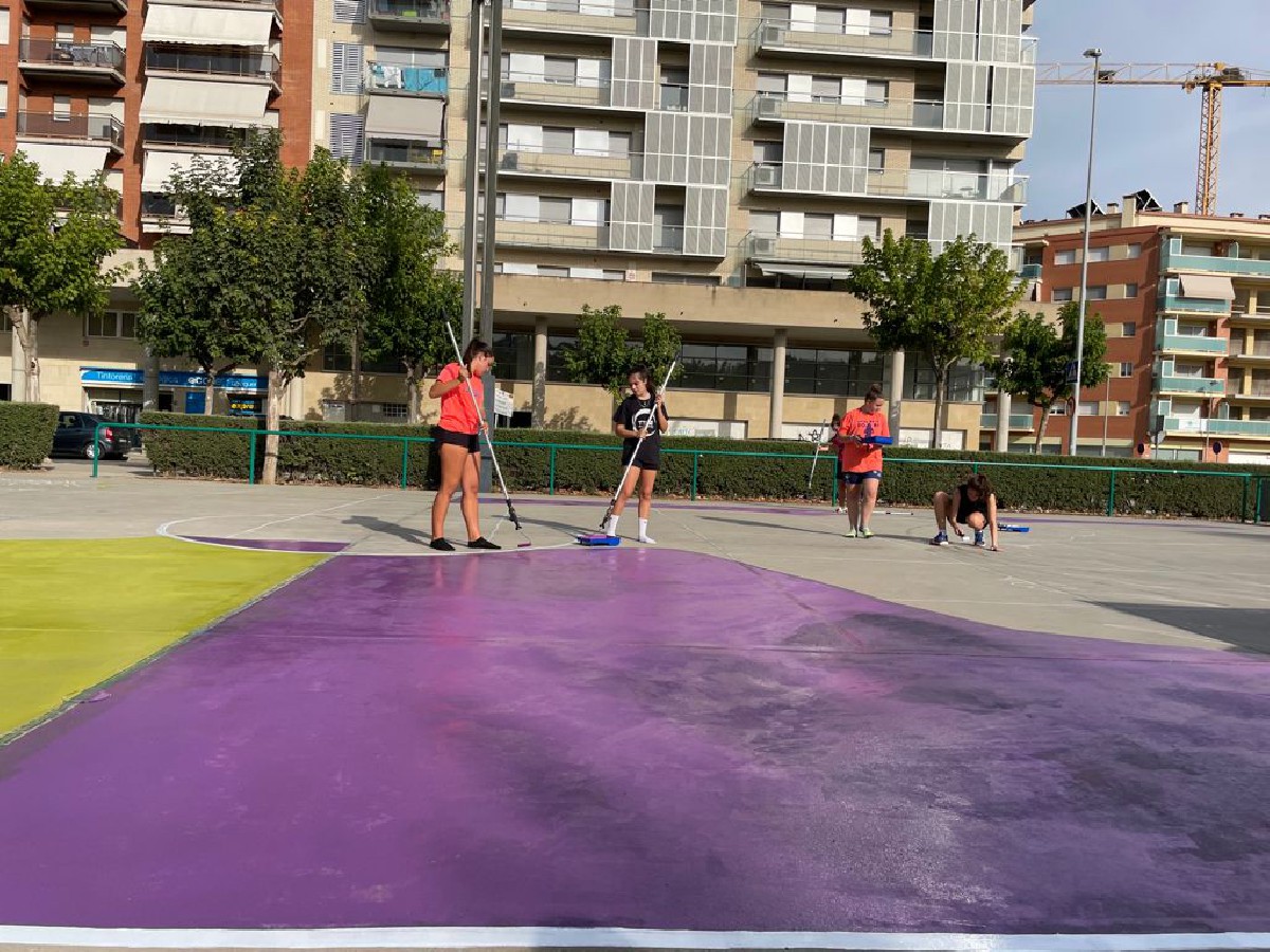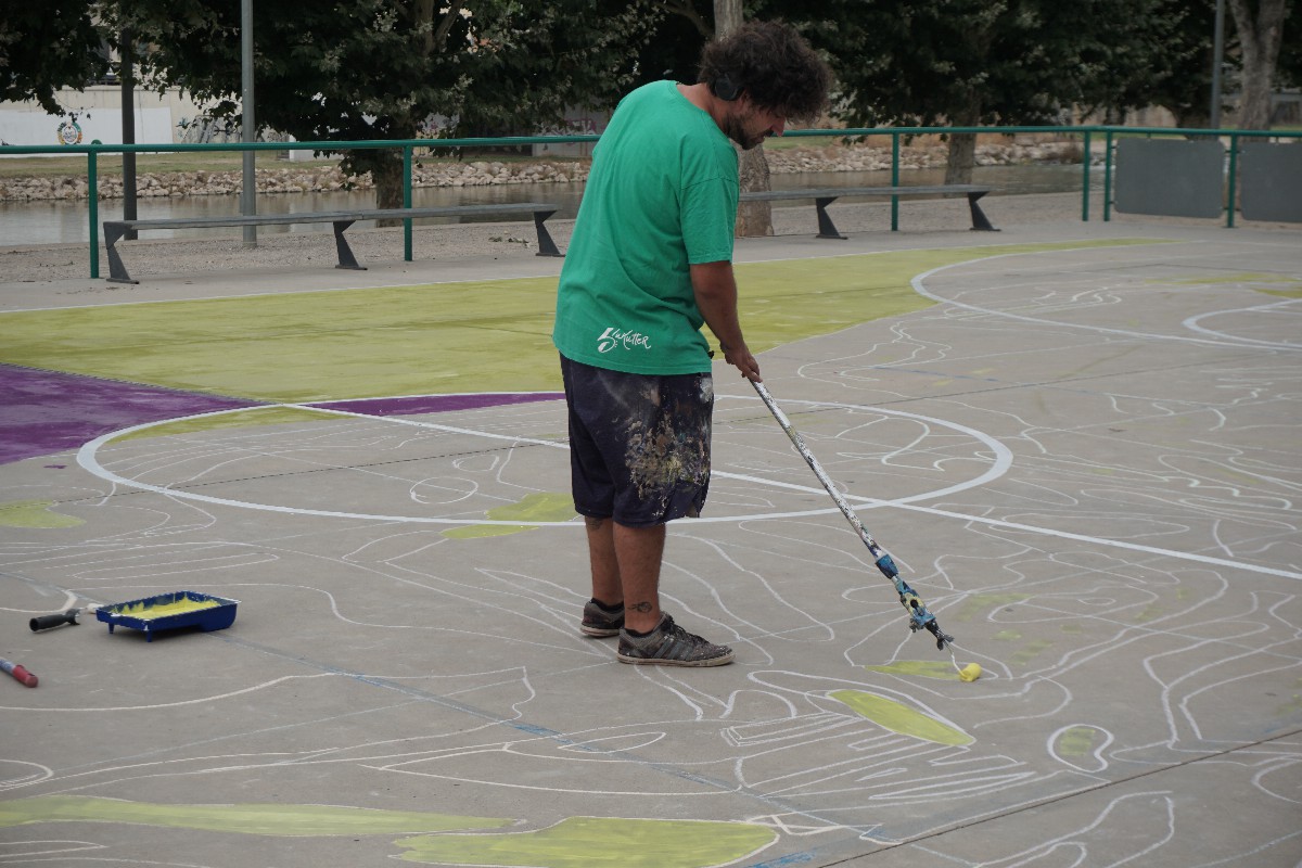L'Àrea d'Esports de la Paeria de Balaguer ha realitzat aquesta setmana un grafitti de grans dimensions al terra de la pista exterior de bàsquet ubicada a l'avinguda Països Catalans.
