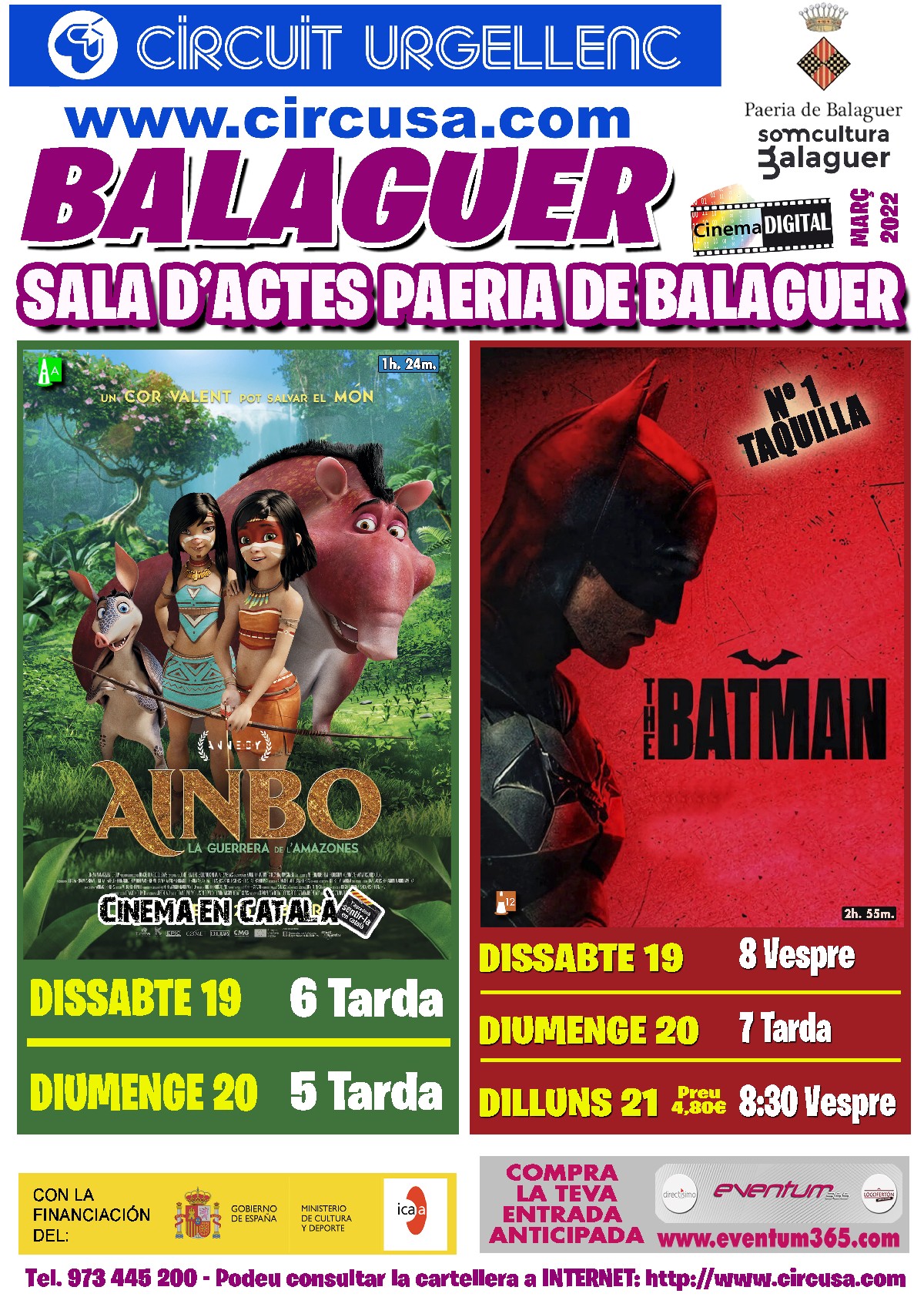 Aquest cap de setmana al Cinema Balaguer es podrà veure el film d'animació AINBO . i també la pel·lícula THE BATMAN
