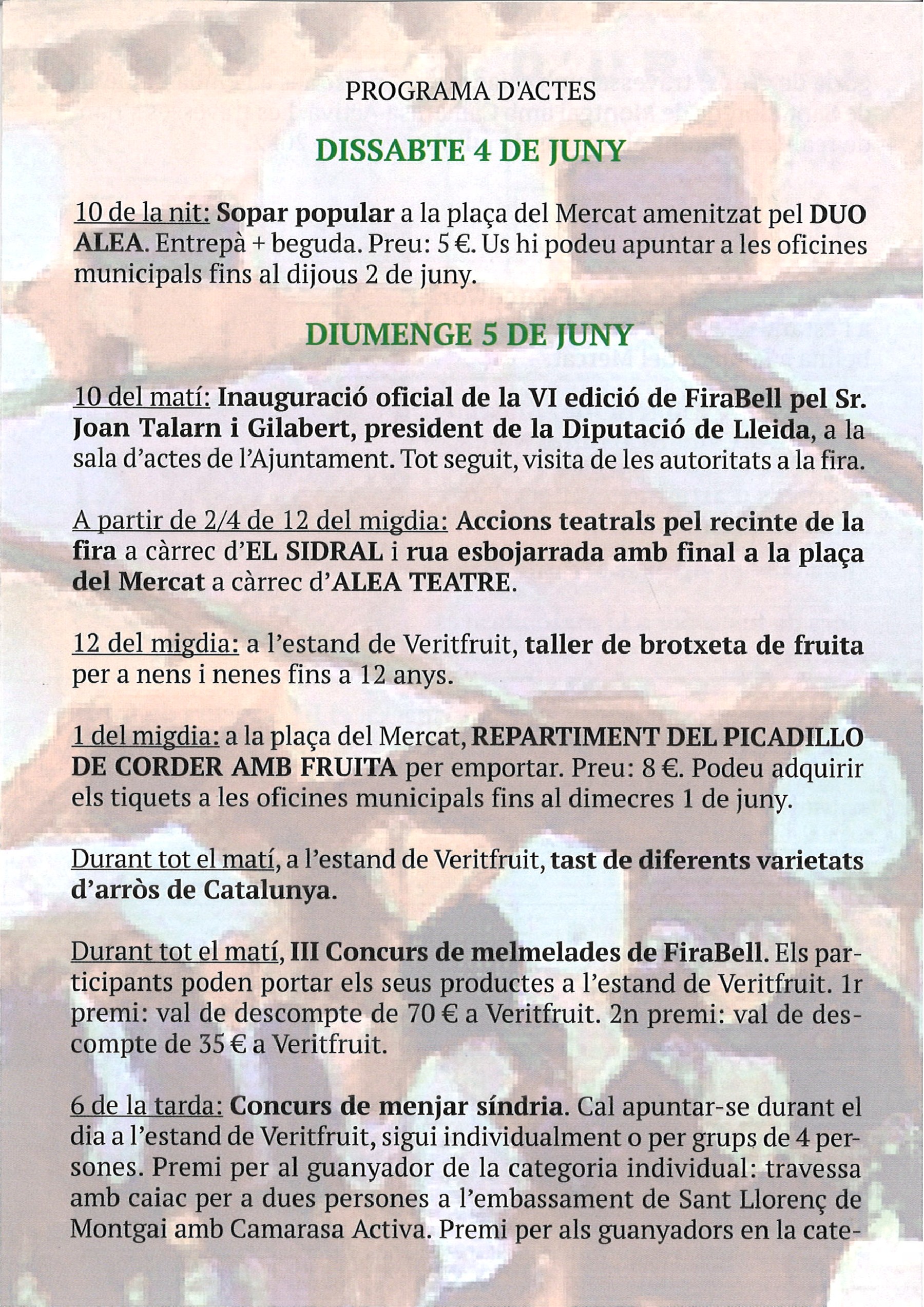 Aquest diumenge 5 de juny torna FIRABELL, la Mostra de Comerç, Indústria, Artesania i Productes de Proximitat a Bellcaire d'Urgell. S'hi farà el repartiment del 'Picadillo de corder amb fruita' per emportar o el III Concurs de melmelades
