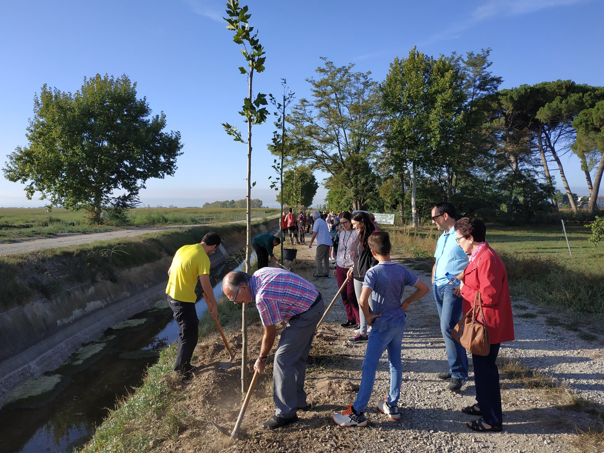 La jornada va començar amb una plantada d'una desena d'arbres plataners a l'Avinguda Canal Viu del Castell del Remei.