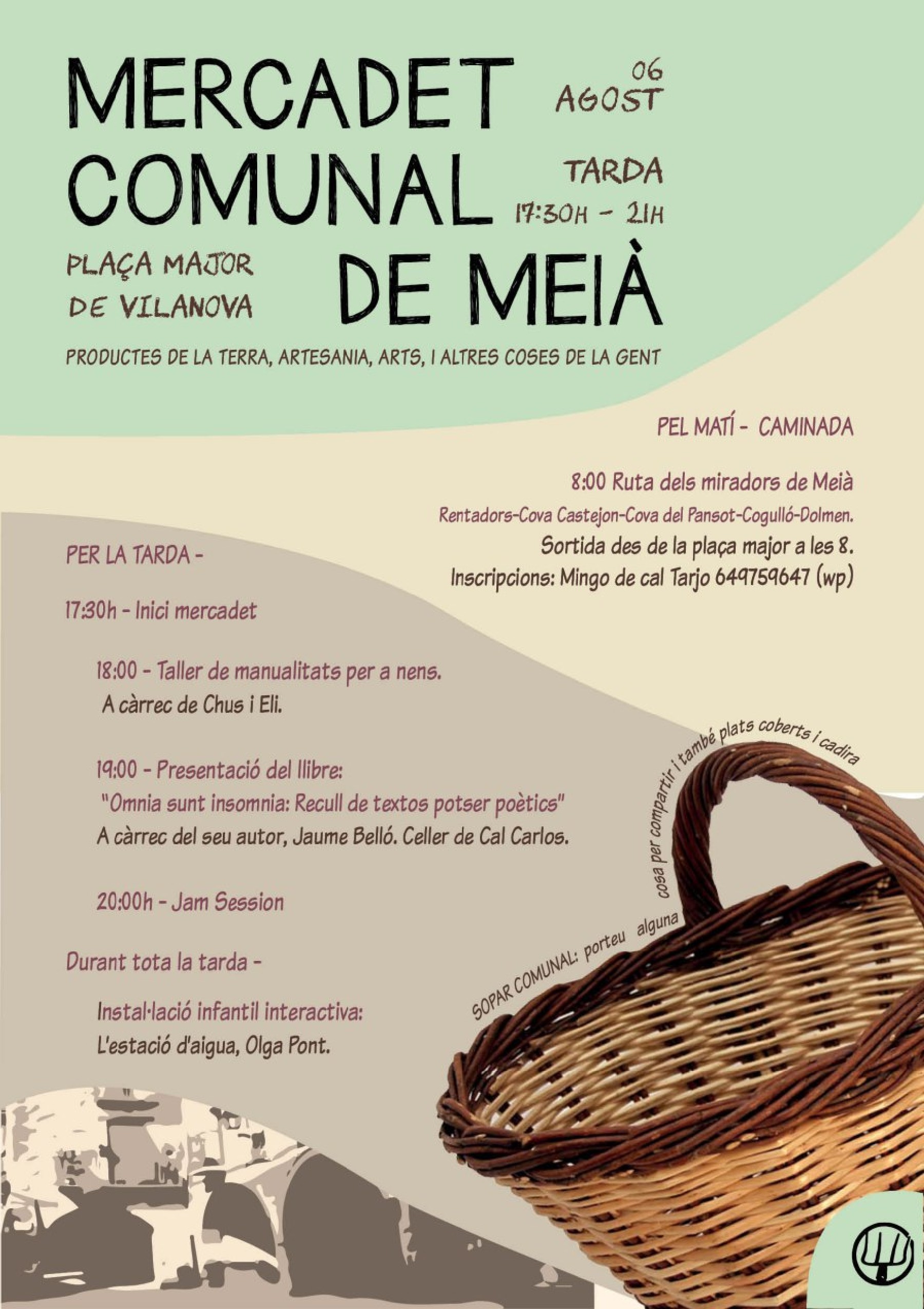 A les 8 del vespre s'hi farà una jam session com a prèvia al sopar comunal, on cada comensal porta alguna cosa per compartir.