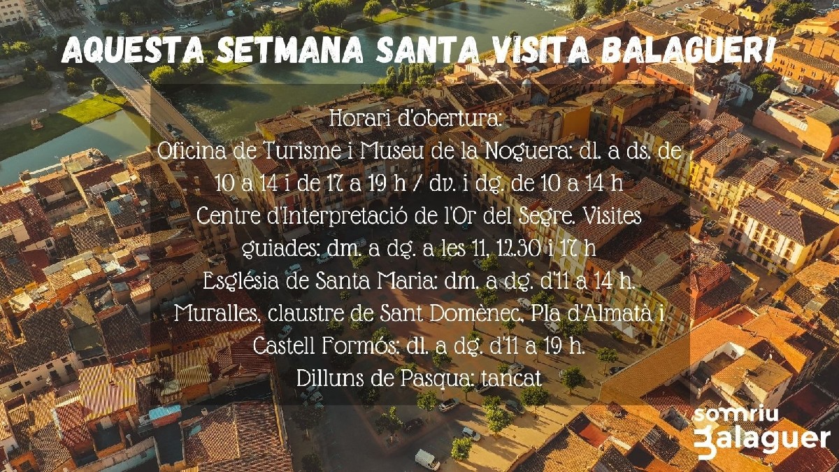 Aquesta setmana Santa es pot gaudir del patrimoni de Balaguer visitant els diferents monuments de la ciutat. També aquests dies es poden visitar diferents exposicions o participar als tallers de recerca d'or al Centre de l'Or del Segre