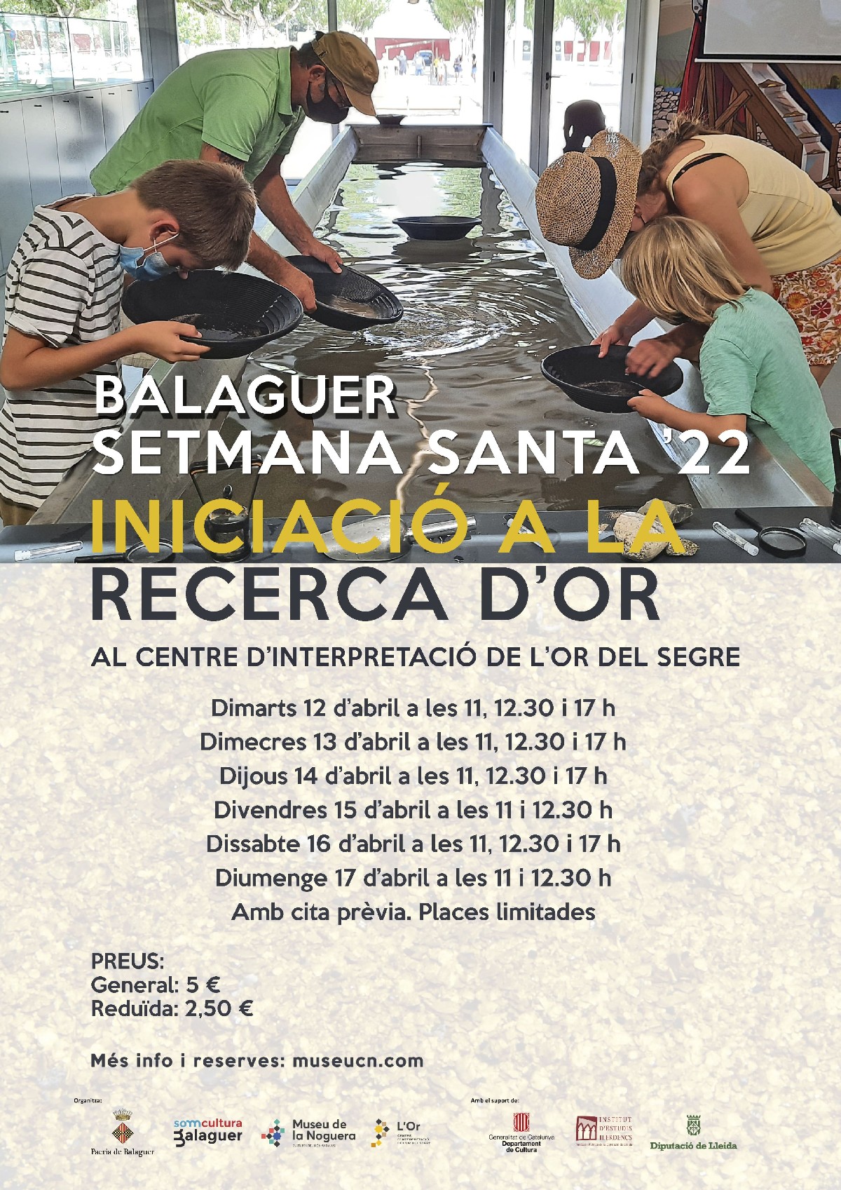 D'altra banda aquest dies el Centre d'Interpretació de l'Or del Segre de Balaguer organitza novament durant la Setmana Santa l'activitat "Iniciació a la recerca d'or".
