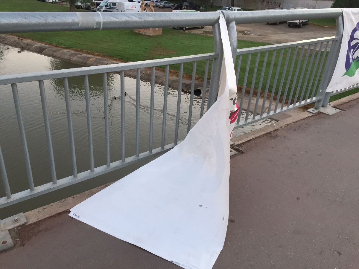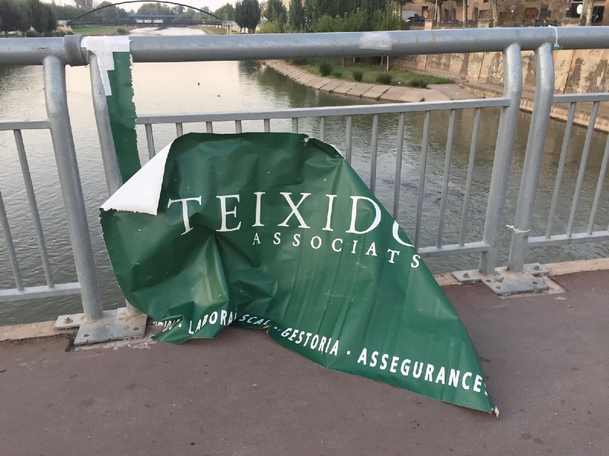 La passada matinada de dissabte un home va arrencar totes les pancartes dels patrocinadors del Posa't la Gorra instal·lades al pont Nou de Balaguer. Algunes des les pancartes, al no poder-les arrencar, les va acabar trencant.
