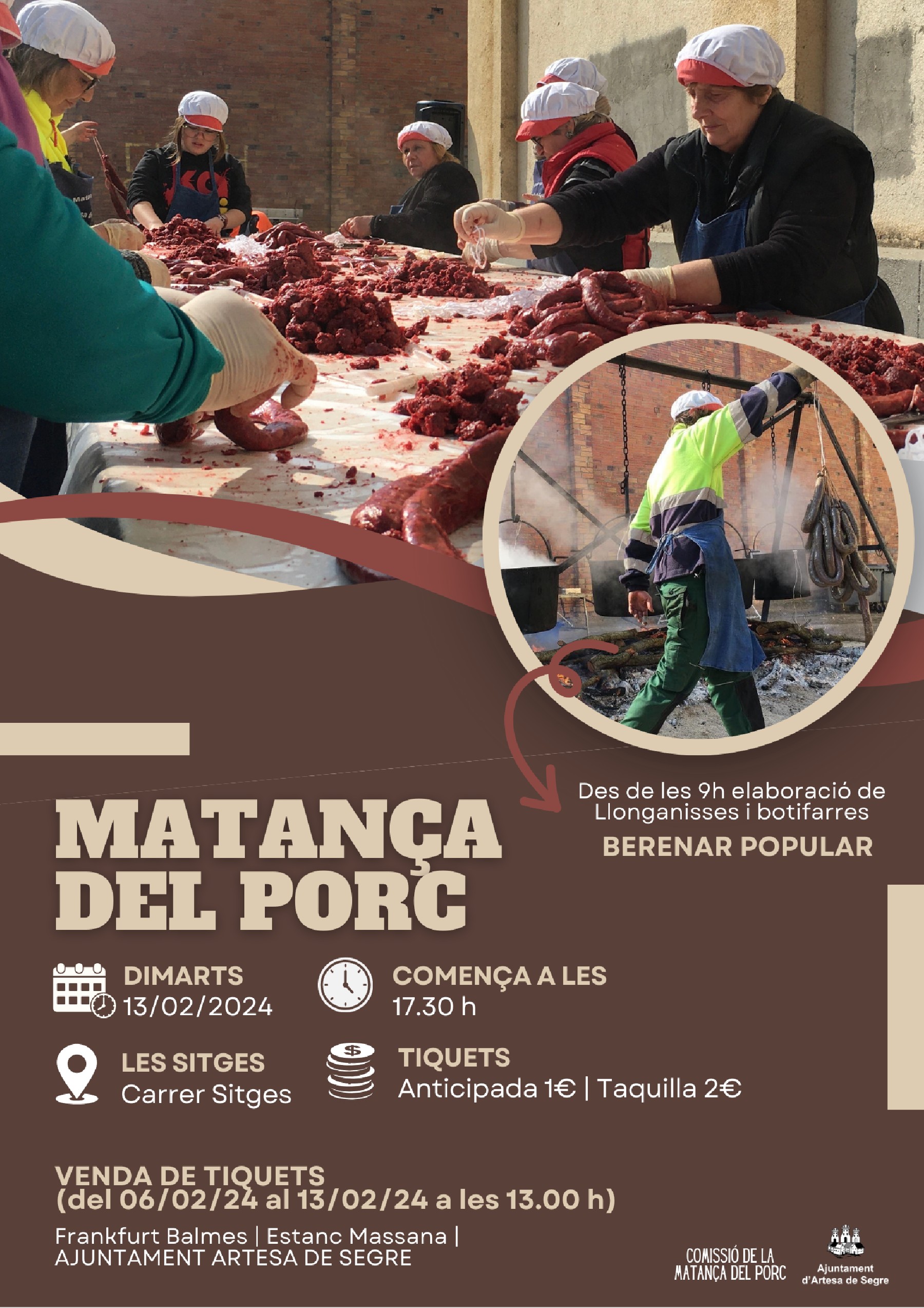 La matança del porc d'Artesa de Segre forma part de la tradició que, com els ranxos, convida a fer un bon àpat just abans de la quaresma, època en que es suposa s'ha de fer dejuni.