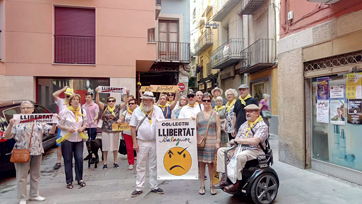 Avui s'ha reunit novament el Col·lectiu Llibertat de Balaguer, en una trobada on s'han posat llaços de color groc a la Plaça del Mercadal.