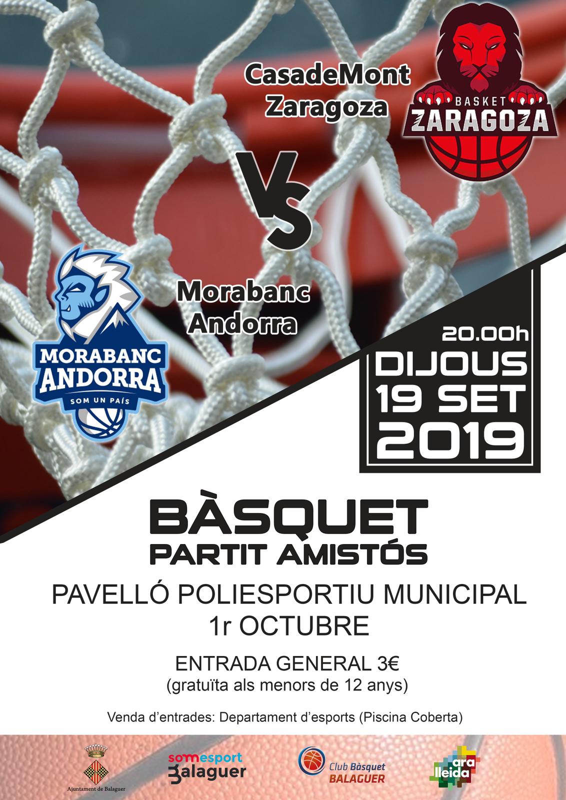 Balaguer acollirà aquest vespre un partit de bàsquet del més alt nivell. Serà a partir de les 8 de la tarda i enfrontarà al CasadeMont Zaragoza i al Morabanc Andorra al pavelló 1e d'Octubre.