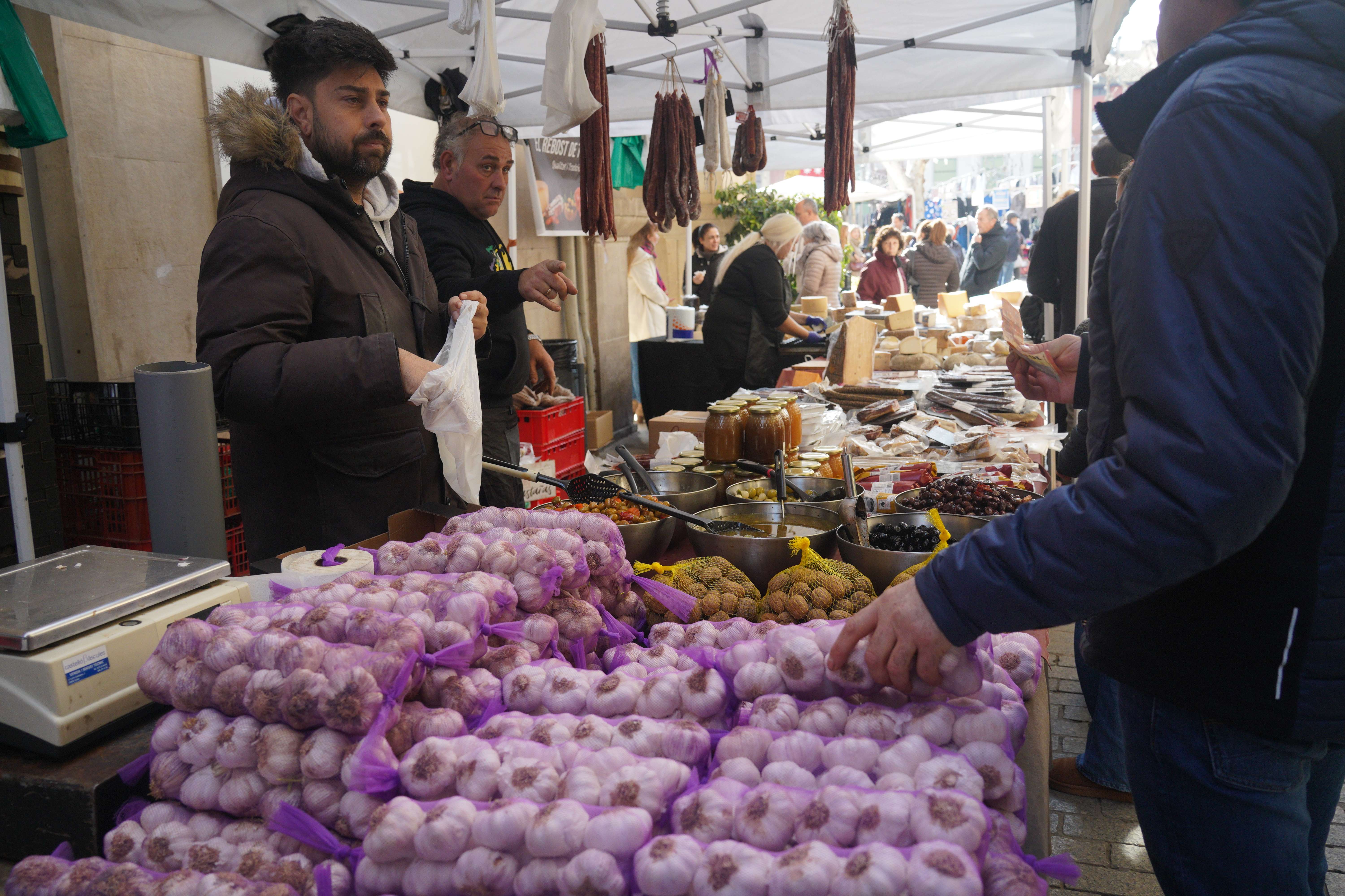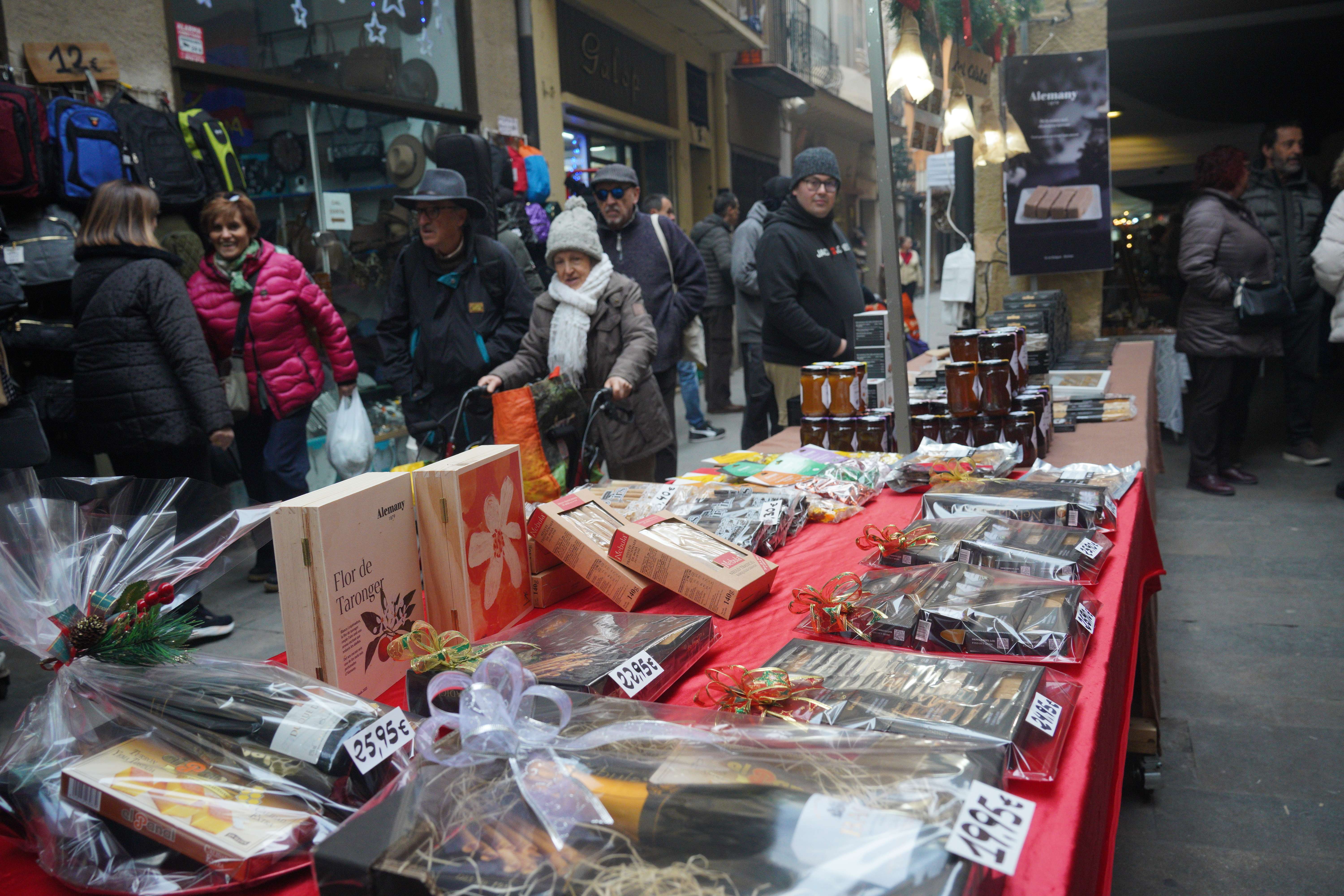 Més de vuitanta parades omplen els carrers del centre històric amb una àmplia oferta de productes de Nadal i gastronomia: torrons, oli, embotits i, també, totes les figures i elements per decorar el pessebre i l’arbre.