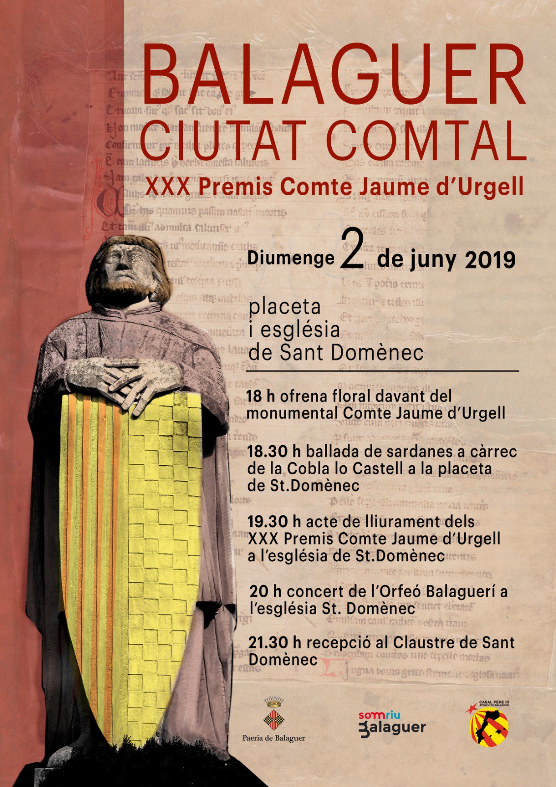 El mateix Biscarri detalla tot seguit com es desenvoluparà l'acte d'entrega d'aquest guardó, que començarà a les 6 de la tarda amb l'ofrena floral davant el monument al Comte Jaume d'Urgell. Seguidament, hi haurà una ballada de sardanes a càrrec de la Cobla lo Castell a la placeta de Sant Domènec i a 2/4 de 8 es farà l'acte de lliurament del XXXè Premi Comte Jaume d'Urgell a l'església de St. Domènec. La jornada acabarà amb un concert de l'Orfeó Balaguerí́ a la mateixa església i una recepció posterior al Claustre de Sant Domènec.