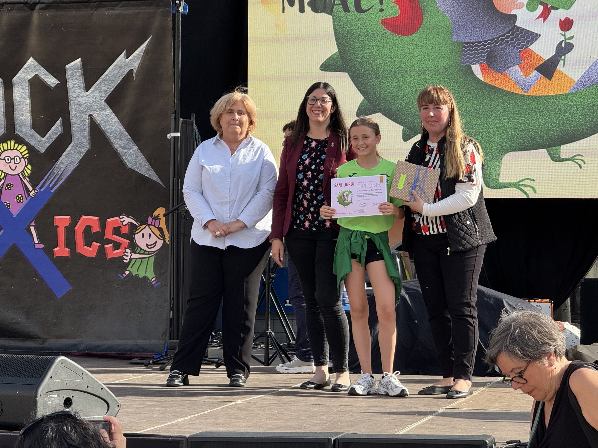 Els guanyadors han recollit el premi de la ma de la paera en cap, Lorena González, la paera d’Educació i infància, Anna Profitós, i vicepresidenta del Consell Comarcal Maricel Segú, i han pogut llegir el seu text.