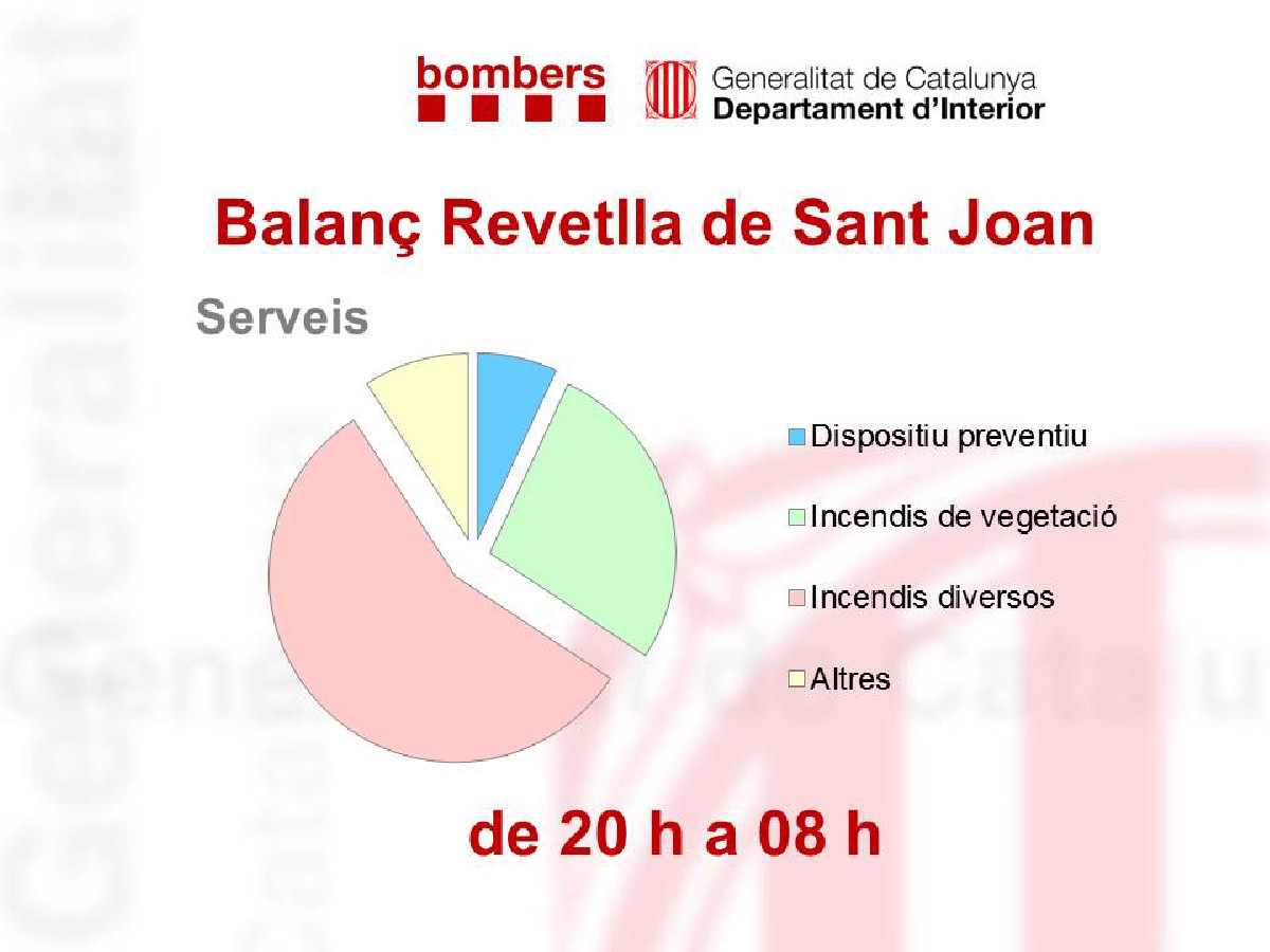 Balanç final Revetlla de Sant Joan: Els Bombers de la Generalitat atenen 709 avisos entre les 20.00 i les 08.00 hores. A la Noguera s'han rebut 4 avisos per incendi