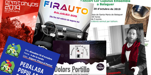 Cap de setmana amb la Festa de la Bicicleta i els Ermitanyos a Balaguer, però també amb una activitat de l'Any dels Llops i una acció contra el càncer. Al territori en destaquen per nombre les fires.