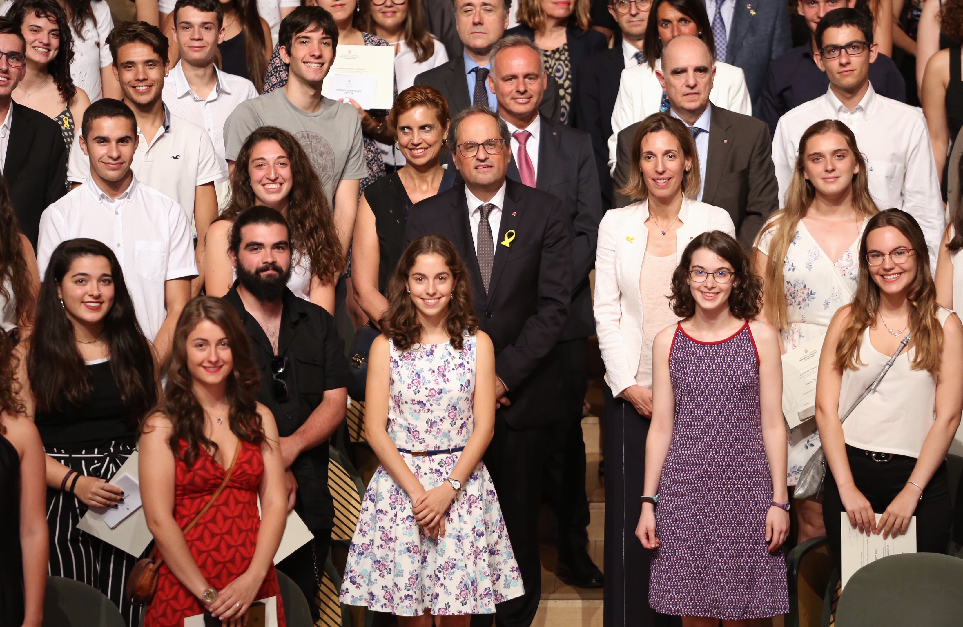 El president de la Generalitat, Quim Torra, acompanyat de la consellera d'Empresa i Coneixement, Àngels Chacón, lliura les distincions als 523 estudiants catalans que han obtingut una qualificació excel·lent en les proves de selectivitat