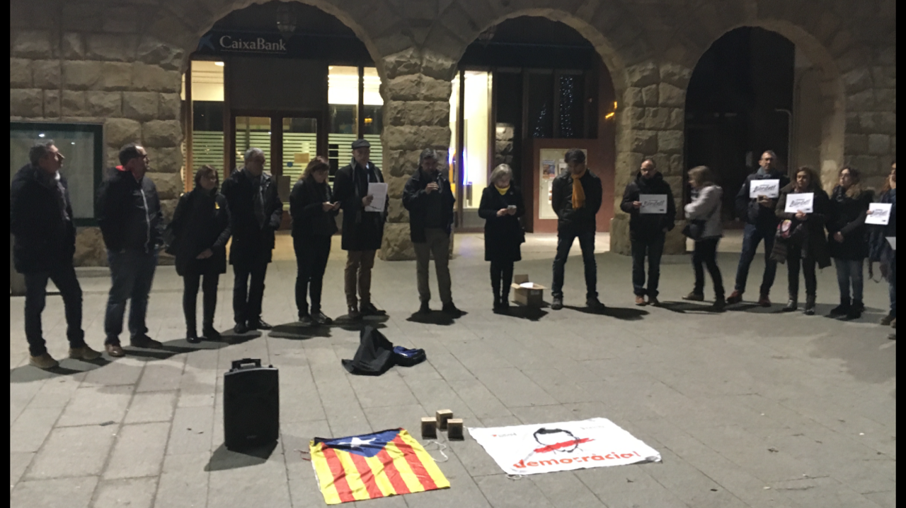 Un centenar de persones, entre elles, alguns alcaldes de la comarca, es concentren davant de l'´juntament de Balaguer per demanar la llibertat d´oriol Junqueras i la resta de presos.
