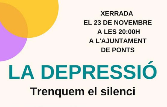 L'Associació Salut Mental la Noguera organitza un nou acte de sensibilització per tal de commemorar el dia Mundial de la Salut Mental. Es tracta d'una xerrada que porta per títol La depressió: trenquem el silenci que es farà a l'ajuntament de Ponts a le