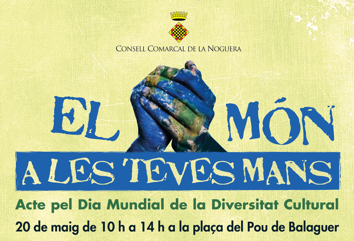 L'Àrea de Serveis Socials del Consell Comarcal de la Noguera celebra el Dia Mundial de la Diversitat Cultural sota el nom «El món a les teves mans». Les activitats previstes tindran lloc el 20 de maig a la plaça del Pou de Balaguer.