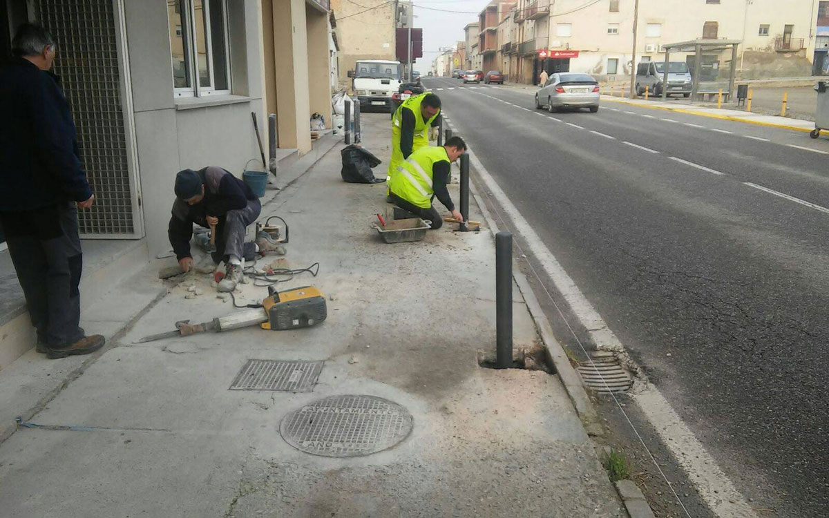 L'Ajuntament de Bellcaire d'Urgell col·loca pilones en alguns trams de vorera de l'avinguda 11 de setembre per preservar la seguretat dels vianants.