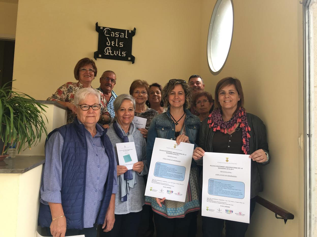 Aquest curs 2016-2017 Menàrguens acollirà una Aula d'Extensió Universitària de la Noguera. El proper dimarts 25 d'octubre a les 17.30 h començaran les classes al Casal dels Avis, que es faran una vegada al mes des de l'octubre fins al juny.