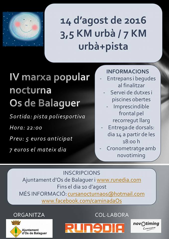 Os de Balaguer organitza una marxa nocturna per al proper diumenge 14 d'agost amb dos recorreguts, un de 3,5 quilòmetres i un altre de 7