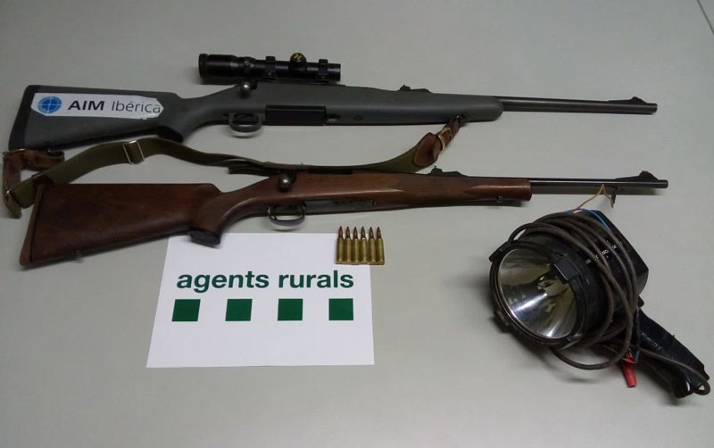 Els Agents Rurals denuncien un caçador furtiu a Os de Balaguer. Caçava de nit als boscos des del vehicle amb l'ajuda d'un potent focus.