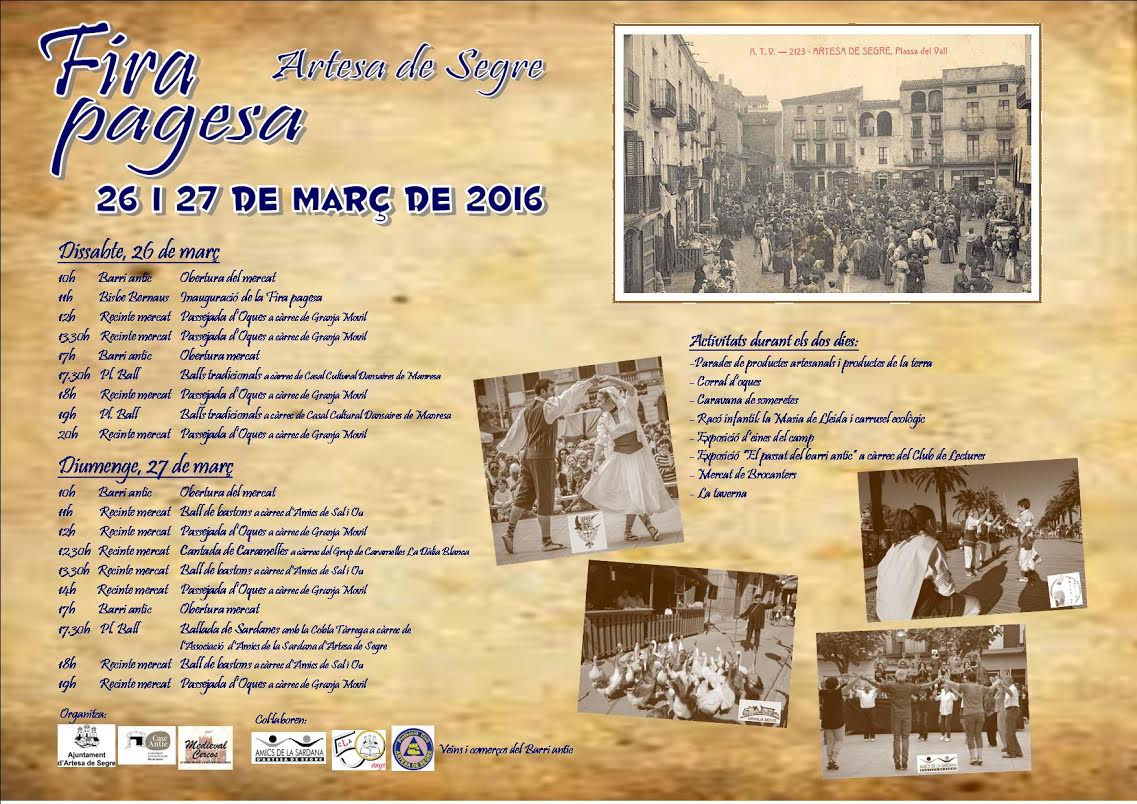 El Barri antic d'Artesa de Segre acollirà els dies 26 i 27 de març la tercera edició de la Fira Pagesa.