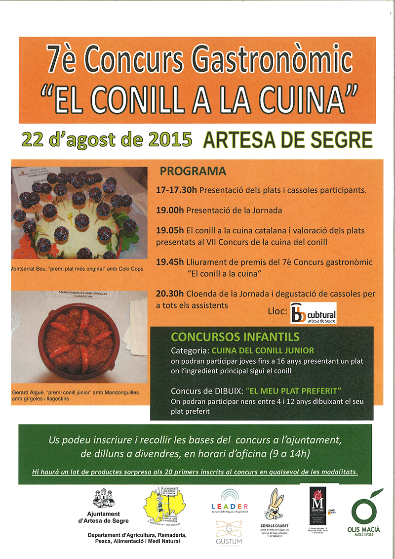 Artesa de Segre acollirà la VII Jornada de la carn i cuina del conill el proper 22 d'agost coincidint amb la Fira de Sant Bartomeu
