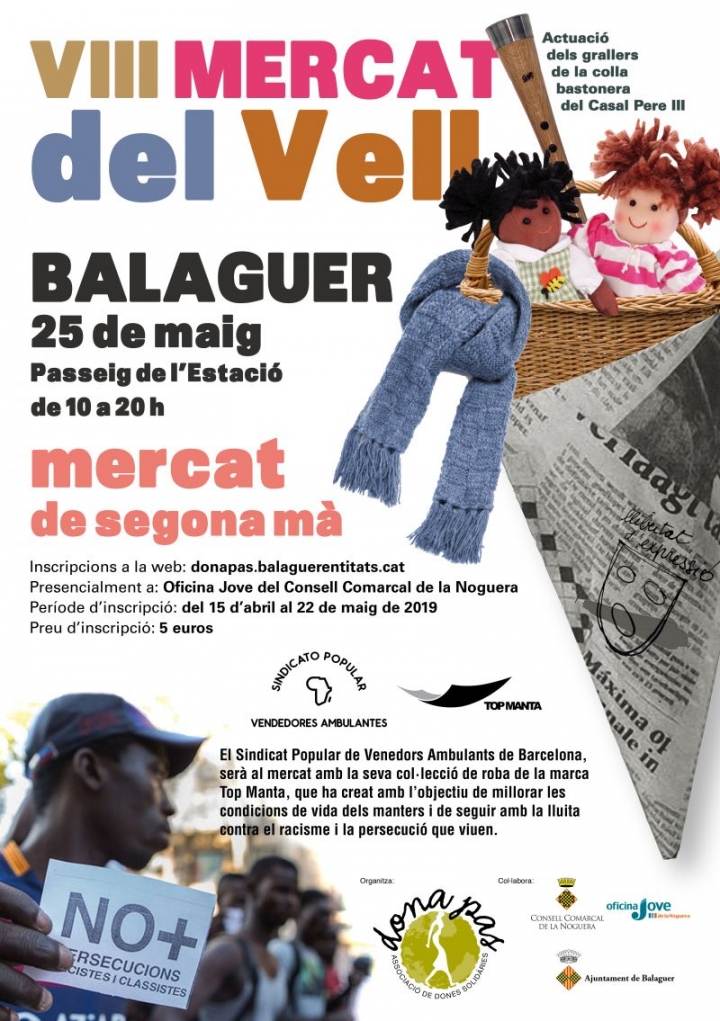 Balaguer celebra el proper dissabte 25 de maig la FESTA DEL COMERÇ JUST I FINANCES ÈTIQUES organitzada per l'Associació DÓNA PAS i en la qual s'inclou el VIII MERCAT DEL VELL.