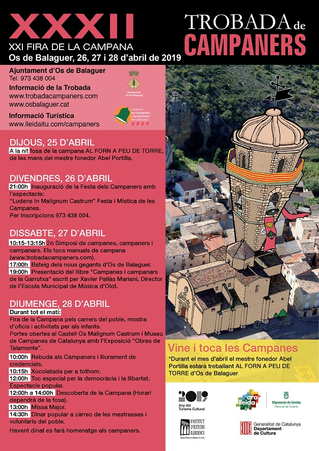 El municipi d'Os de Balaguer celebrarà del 26 al 28 d'abril la 32a Trobada de Campaners i el diumenge 28 la 21a Fira de la Campana