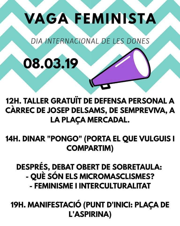 El Moviment Feminista de la Noguera organitza per aquest divendres un taller de defensa personal, un dinar i un debat, en motiu del 'Dia Internacional de les Dones'