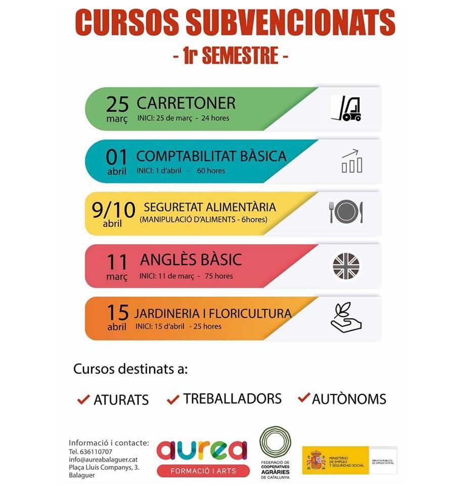 L'acadèmia Aurea inicia novament el seu programa de cursos subvencionats per a totes aquelles persones que vulguin incorporar-se al mercat laboral o ascendir professionalment.