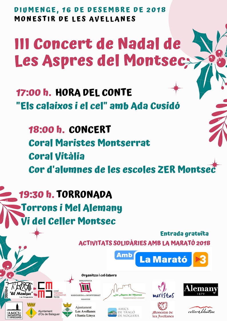 El diumenge dia 16 de desembre tindrà lloc una nova edició del Nadal de Les Aspres del Montsec, que aquest any inclourà una hora del conte i una torronada, tot plegat, en benefici de la Marató de TV3