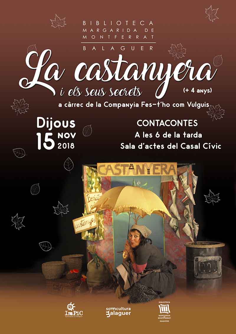 L'hora del conte porta avui dijous 'La castanyera i els seus secrets', a càrrec de la Companyia Fes-t'ho com vulguis, al Casal Cívic del carrer del Miracle de Balaguer