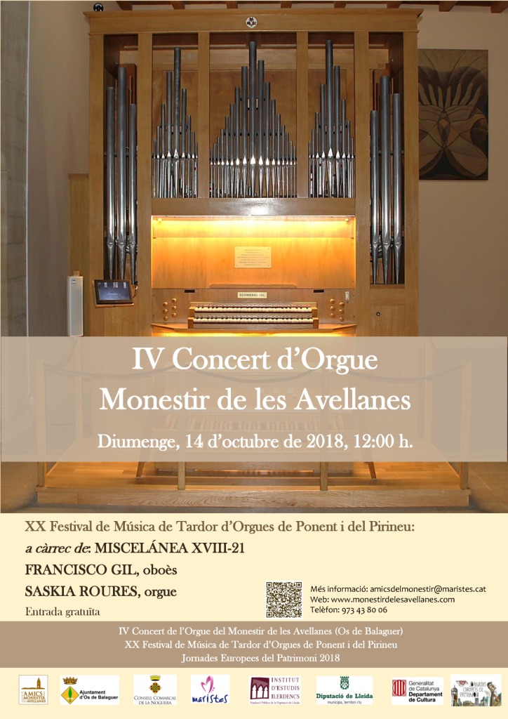 Concert al Monestir d'Os de Balaguer el diumenge 14 d'octubre amb el duet aragonès Miscelánea, amb un concert d'oboè i orgue, dins del XX Festival de Música de Tardor ORGUES DE PONENT I DEL PIRINEU