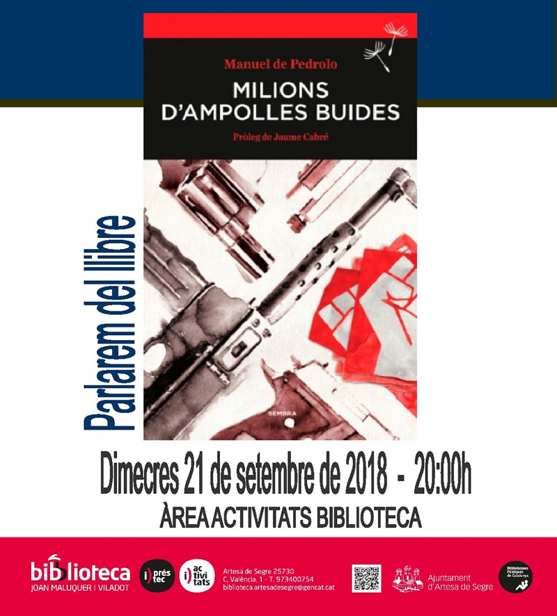 La biblioteca Joan Maluquer i Viladot d'Artesa de Segre acull aquest divendres la xerrada-col·loqui 'Pedrolo insubornable' a càrrec de Carme Vidal