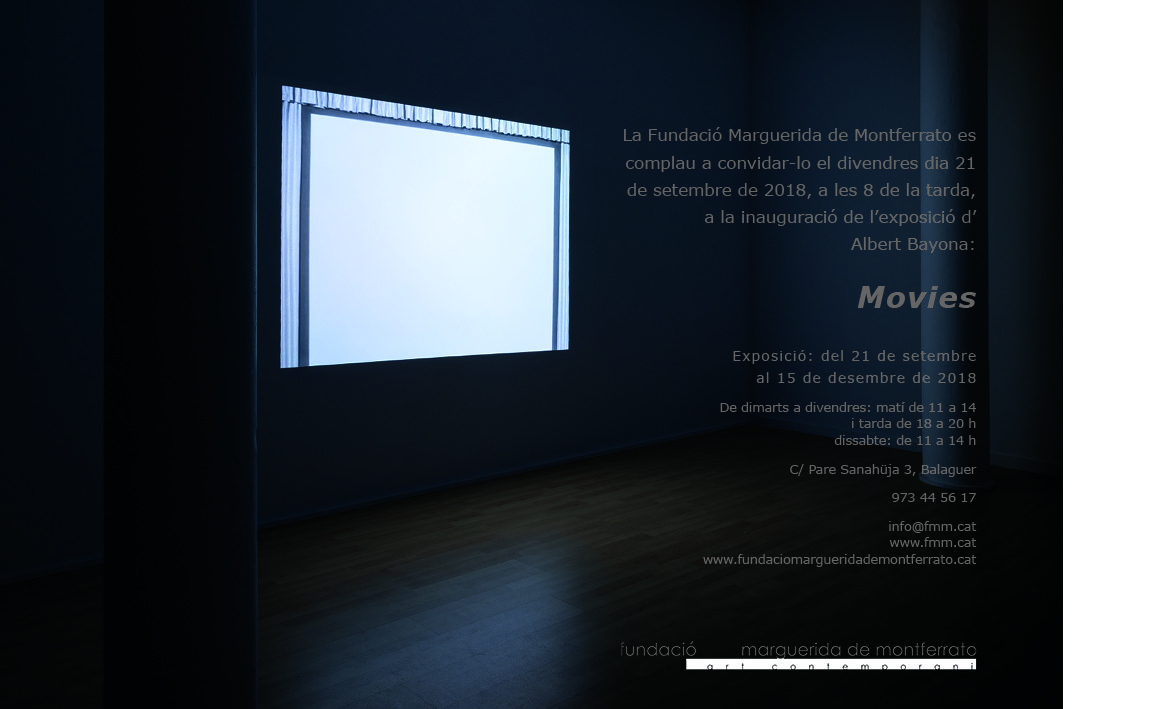 La Fundacio Margarida de Montferrato inaugura el proper divendres dia 21 l'exposició de videoart, Movies, de l'artista Albert Bayona.