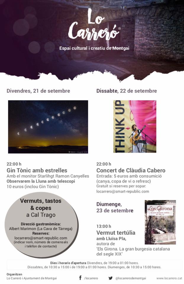 Lo Carreró de Montgai torna a omplir d'activitats el cap de setmana amb una observació de la lluna, un concert i un vermut tertúlia