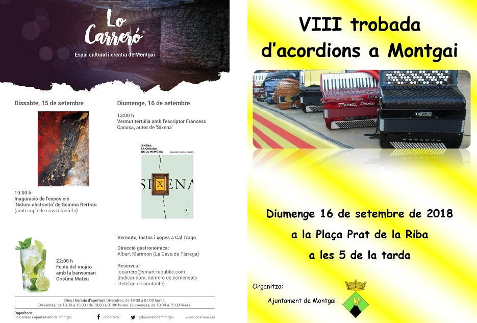 Montgai aquest cap de setmana acollirà una exposició de Gemma Nierga, una tertúlia vermut amb Francesc Canosa i la VIII trobada d'acordions.