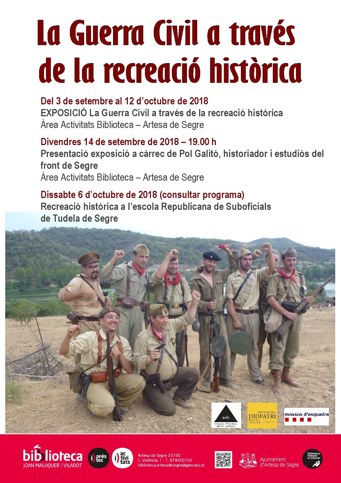 Avui divendres a les 7 de la tarda tindrà lloc a la biblioteca d'Artesa de Segre la presentació de l'exposició La Guerra Civil a través de la recreació històrica