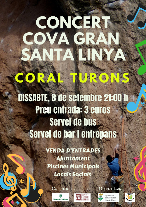 Aquest dissabte tindrà lloc el Concert d'estiu de la Cova Gran de Santa Linya. Hi actuarà la Coral Turons.