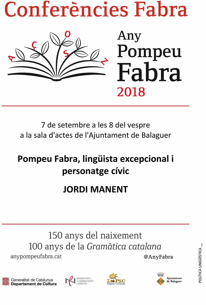Aquest divendres continuant els actes programats a Balaguer en motiu de l'any Fabra. Avui té lloc una conferencia a càrrec de Jordi Manent, filòleg i subdirector de la Revista de Catalunya.