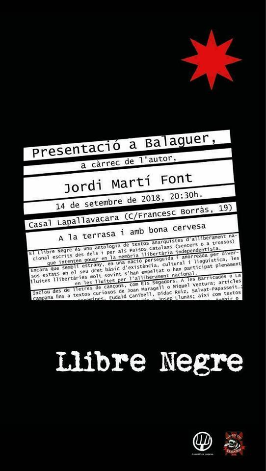 Aquest divendres es presentarà al Casal Lapallavacara de Balaguer, El Llibre Negre, a càrrec del seu autor, l'escriptor Jordi Marti Font.