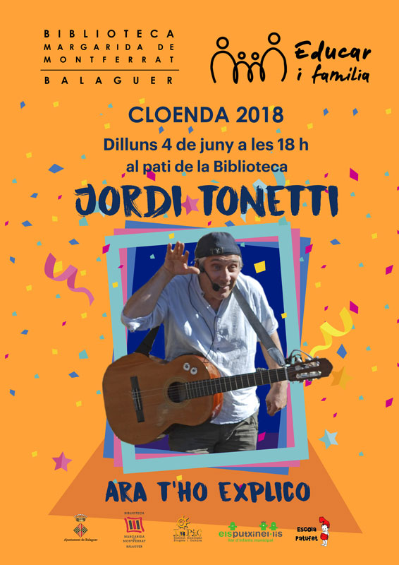 La Biblioteca Margarida de Montferrat de Balaguer fa avui l'acte de cloenda del projecte Educar and Família amb l'espectacle 'Ara t'ho explico' a càrrec de Jordi Tonietti.