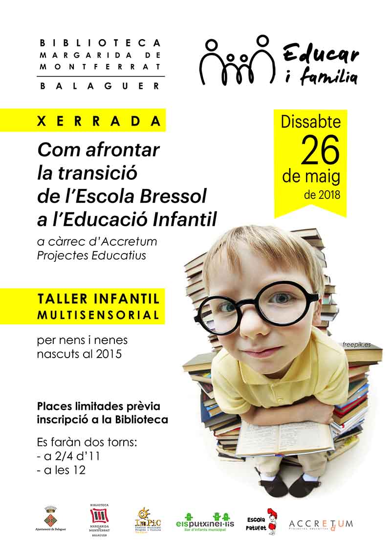Demà dissabte la biblioteca Margarida de Montferrat collirà el taller 'Com afrontar la transició de l'escola bressol a l'educació infantil' a càrrec de Cristina López, educadora social i psicopedagoga.