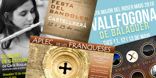 Cap de setmana amb l'Aplec de les Franqueses entre altres activitats a Balaguer, o ben a prop les festes majors de La Sentiu, Vallfogona, Lleida o Tàrrega.