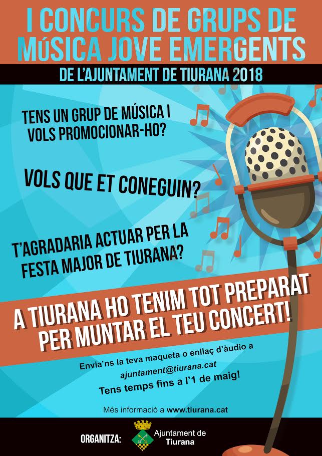 Tiurana organitza el Primer Concurs de grups locals de música jove, obert a grups de tota la demarcació i que permetrà als guanyadors actuar a la festa major del municipi.